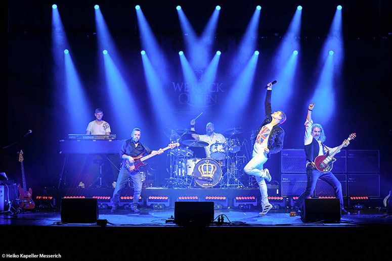 WE ROCK QUEEN spielt in einem ca. 2,5 bis 3-stündigen Konzert die bekanntesten Songs von QUEEN, einer Band, die damals, wie heute die Musikwelt bewegt und sie bis heute geprägt hat. Freddie Mercury galt als einer der bedeutendsten Rocksänger seiner Zeit. Mit seiner Band QUEEN mischte er über 20 Jahre ganz oben in den Hitparaden mit und präsentierte uns eine Reihe unvergesslicher Welthits. Mit WE ROCK QUEEN können die Fans dieser Band das unglaublich breite musikalische Spektrum von Glamrock, Rock bis hin zu opernhaft anmutenden Stücken noch einmal live erleben.